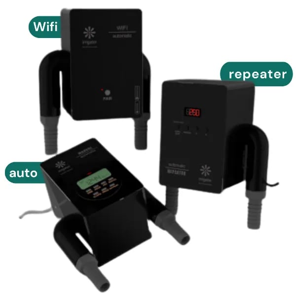 irrigator offer 3 control model. 1. irrigator Wifi (enable to scheuled and even control or schedule remoetely using mobile app) 2. Irrigator auto ( on device schedule control . 3. Repeater (no clock, just set irrigation mins and off hours simplest affordable)