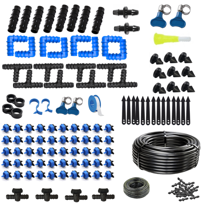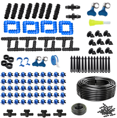 Select your drip kit based on your plant count, ready to use with your tap or timer. Each kit includes 15 components tailored for different plant capacities (30, 50, 60, 100, 150 plants), meticulously chosen for realistic consumption. Enjoy a hassle-free, tool-free installation experience, guaranteed – except for using scissors.